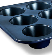 Bring the new standard in nonstick to your oven with this durable 12-cup muffin pan. Blue Diamond bakeware features Diamond Matrix Technology. This unique diamond textured surface delivers crispy results and quick release every time! The pan’s premium nonstick interior is free of PFAS, lead, and cadmium so you can cook with confidence. Reinforced rims enhance the strength and stability of the durable steel body, which delivers fast and even heating. Rust resistant, this pan is dishwasher and freezer safe. Oven safe up to 220°C.