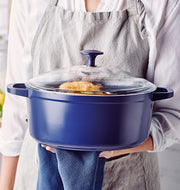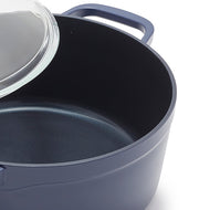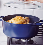 The Big Batch is everything you love about Dutch ovens without the hassle! Big Batch’s forged aluminium construction makes it 50% lighter than cast iron, so you get incredible performance without struggling to move the pot. This quick-heating construction also gets you cooking faster—you get cast iron performance without the weight or the wait! And thanks to Blue Diamond’s signature nonstick coating, it wipes clean and is dishwasher safe for tough messes. Blue Diamond’s ultra-durable diamond-infused ceramic coating is 5x harder and 10x longer lasting then traditional nonstick coatings, making it scratch-resistant and metal utensil safe. It’s also free of PFAS, lead, and cadmium. Big Batch’s cook and look dome lid is temperature shock-resistant to give you an easy look at your meals without losing heat. The domed shape also provides 85% more room than a traditional lid and promotes better airflow. The huge 5.3 litres capacity ensures you have plenty of room for all your meals while the heavy-duty forged bases prevent warping, wobbling, or degrading over time. Oven and broiler safe up to 220°C, glass lids up to 160°C. Dishwasher safe.