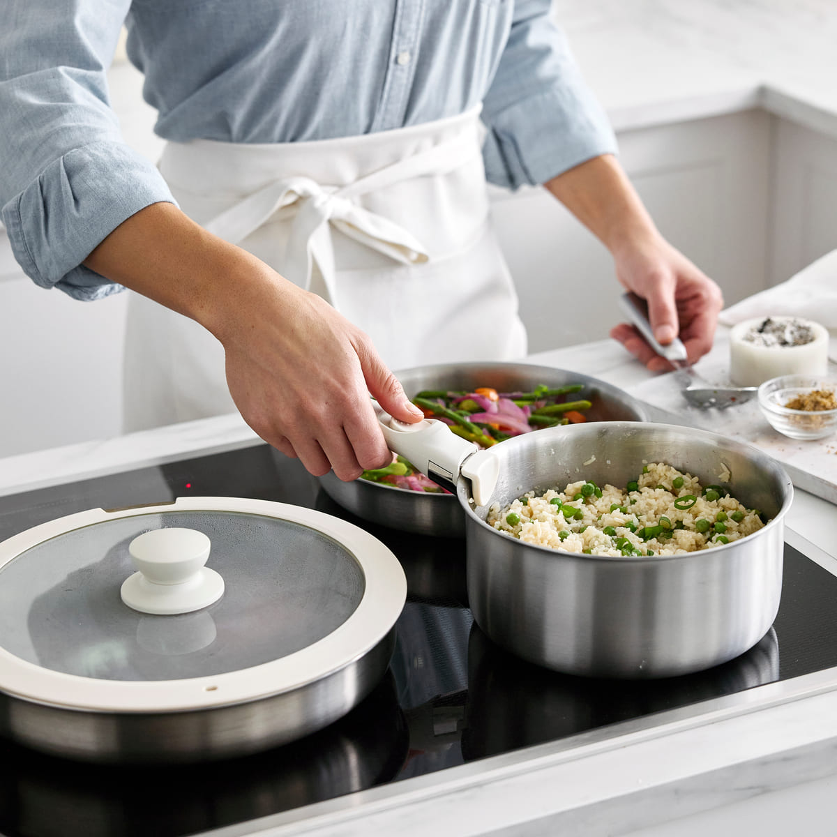 Transform your cooking experience with Click Stainless Steel, where innovation meets convenience. Crafted from 3-ply stainless steel, this cookware set offers superior heat distribution and makes them ideal for everyday tasks as well as advanced techniques like deglazing.