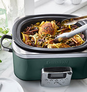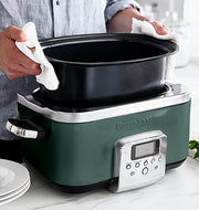 Flavour doesn’t happen in an instant. Create tasty dishes and family-sized meals with massive flavour—our slow cooker creates mouth-watering tastes with the press of a button. Sear your food to start, then cook it low and slow to draw out maximum flavour. Slow Cook, Roast, Brown/Sauté, and Steam with the easy-to-use presets! Plus, the large LCD screen makes finding your setting simple while the striking body is a countertop stunner. Take your time while cooking, then clean up quickly with Thermolon™ Volt, a healthy ceramic non-stick coating specially designed for kitchen appliances.