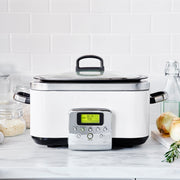 Flavour doesn’t happen in an instant. Create tasty dishes and family-sized meals with massive flavour—our slow cooker creates mouth-watering tastes with the press of a button. Sear your food to start, then cook it low and slow to draw out maximum flavour. Slow Cook, Roast, Brown/Sauté, and Steam with the easy-to-use presets! Plus, the large LCD screen makes finding your setting simple while the striking body is a countertop stunner. Take your time while cooking, then clean up quickly with Thermolon™ Volt, a healthy ceramic non-stick coating specially designed for kitchen appliances.