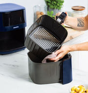 Our XXL air fryer is a versatile companion for your kitchen. With its PFAS-free ceramic non-stick coating, you can now savour crispy and healthy food with just a fraction of the oil or fat! Cleaning up afterward is a breeze too!