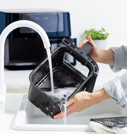 Wash the frying basket and crisping basket in warm and hot soupy water. Rinse and dry thoroughly. The frying basket and crisping basket are hand wash only