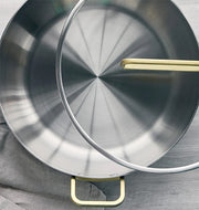 The weighted glass lid is designed with a belief that the lid should be an extension of the pan’s body, not an accessory