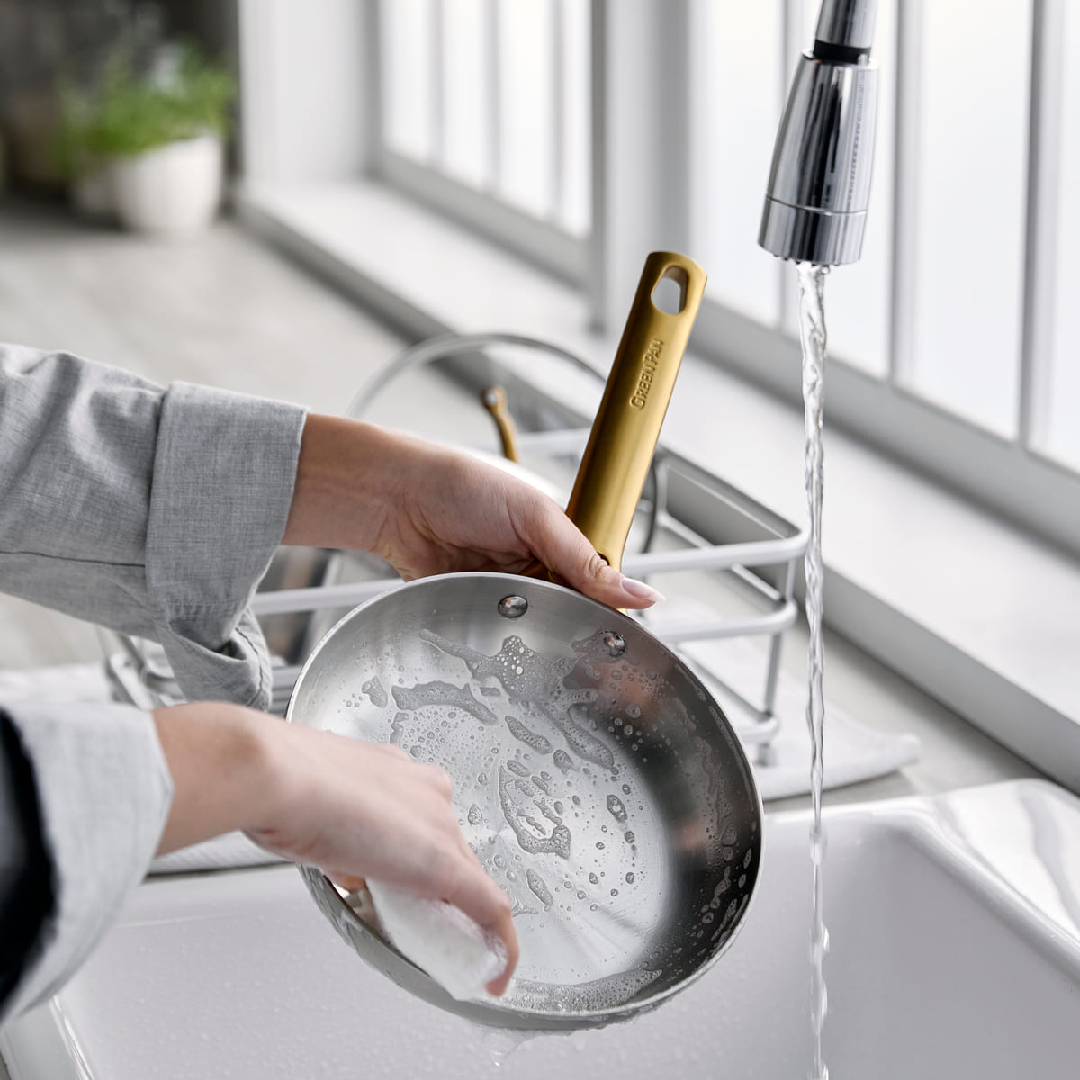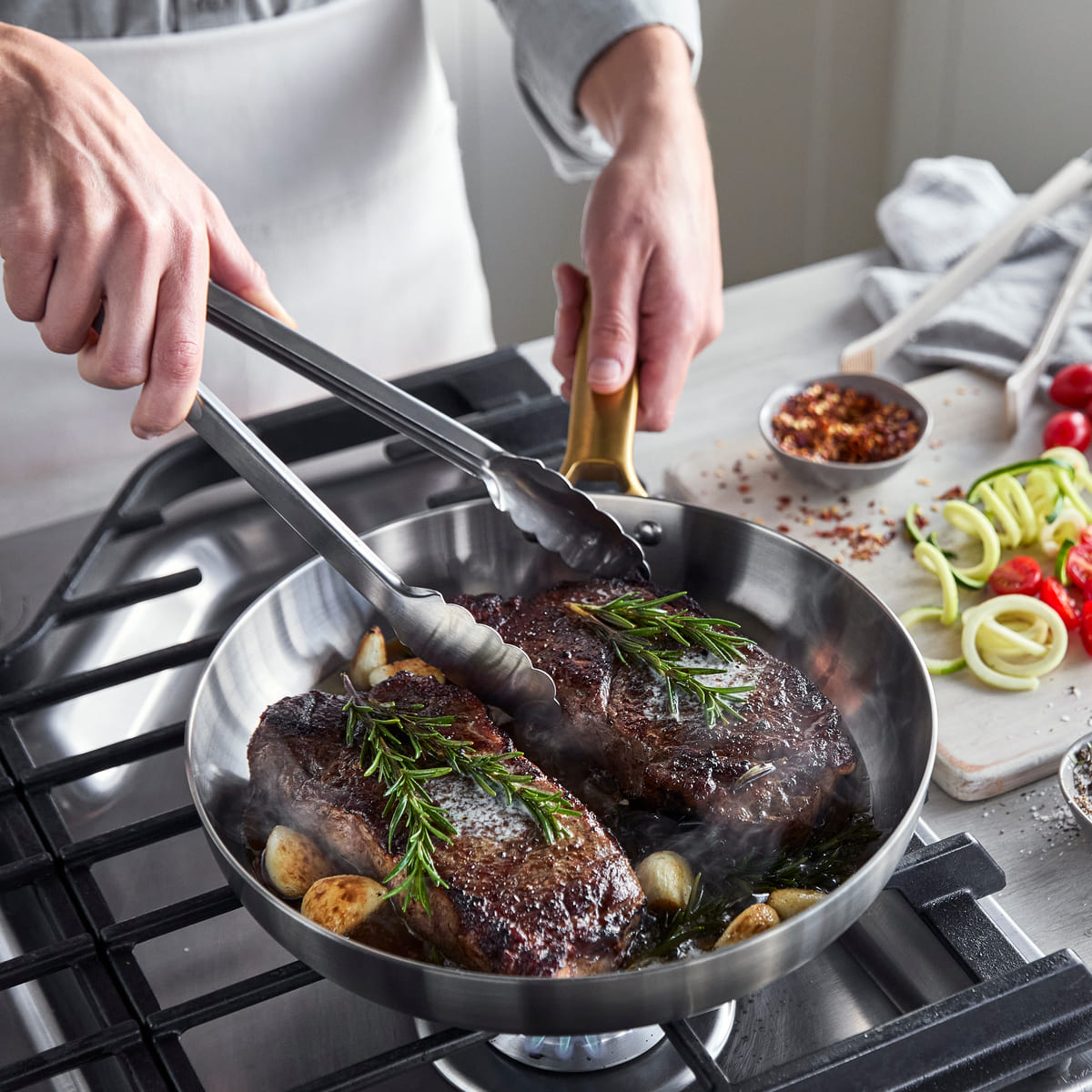 Professional-grade tri-ply stainless steel distributes heat evenly for uniform browning, which is why it's a mainstay in pro kitchens. And with proper care, it will last a lifetime.