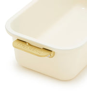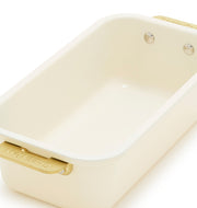 Crafted from aluminized steel, the Reserve Bakeware is designed for maximum strength and long-lasting performance. Simple, stylish, and built to last, this healthy ceramic loaf pan is perfect for your favourite sweet dessert or a savoury casserole. Our PFAS-free non-stick provides effortless food release, while the gold-tone handles offer a strong and stylish touch. After use, you can clean it in no time.