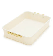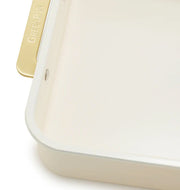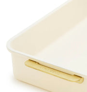 Crafted from aluminized steel, the Reserve Bakeware is designed for maximum strength and long-lasting performance. Simple, stylish, and built to last, this healthy ceramic rectangular cake pan is perfect for roasting veggies, baking casseroles and more. Our PFAS-free non-stick provides effortless food release, while the gold-tone handles offer a strong and stylish touch. After use, you can clean it in no time.