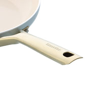 Add colour to your cooking experience with a Shades frying pan set! The harmonious, trendy shades will instantly make you feel connected to nature. What’s more, the pan bodies contain recycled aluminium, featuring our signature PFAS-free ceramic non-stick coating. A perforated induction base ensures even heating while standing up to daily demands. The cream interior and champagne-tone handle complement the design beautifully. The pans are easy to wipe clean or you can pop them in the dishwasher for tough messes. They can also go in the oven up to 200°C.