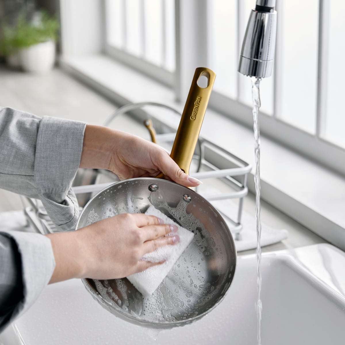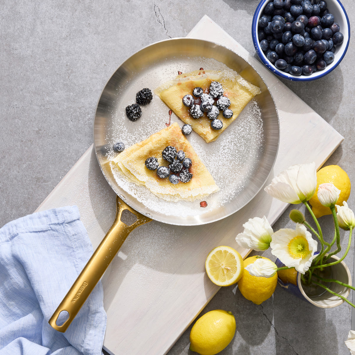 Professional-grade tri-ply stainless steel distributes heat evenly for uniform browning, which is why it's a mainstay in pro kitchens. And with proper care, it will last a lifetime.