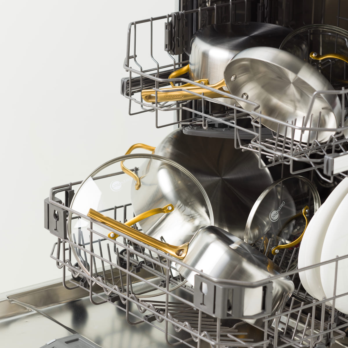 Two layers of stainless with a powerful aluminum core for world-class heating and pro-level response